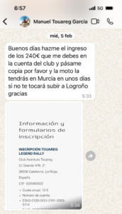 Yo le contesto el mismo día a las 6:08, como pasa el día y no recibo respuesta, el jueves llamo al chofer del camión que trae las motos, inmediatamente me responde.